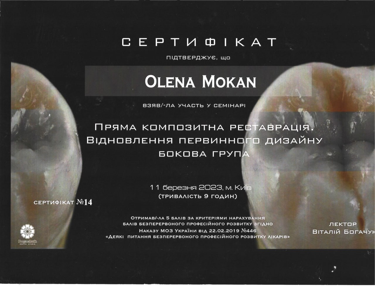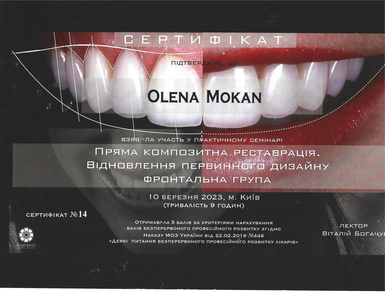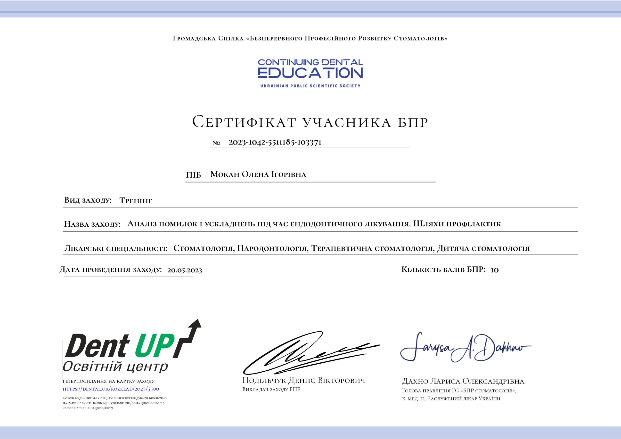 Очолює клініку МоканДент більше десяти років. Постійно відвідує спеціалізовані стоматологічні курси з різних напрямків. Впроваджує в роботу клініки новітні методики і технології