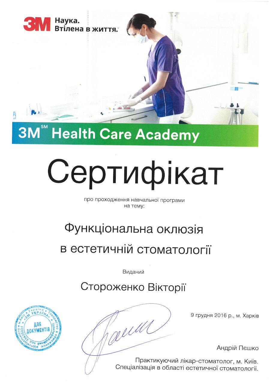 “Функціональна оклюзія в естетичній стоматології”, 2016 рік, Харків.
