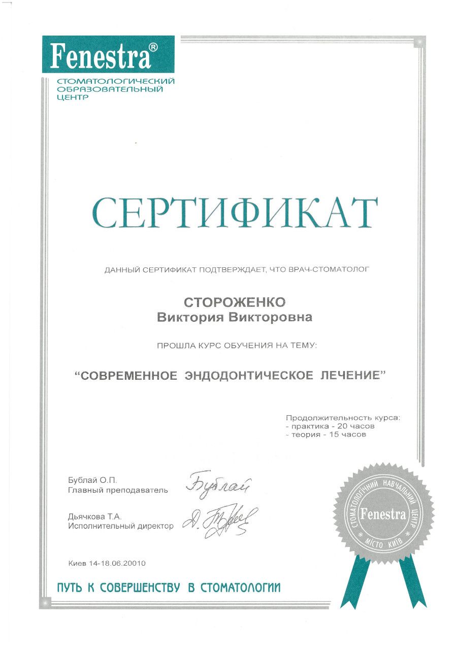 “Сучасне ендодонтичне лікування», 2010 рік, Київ.