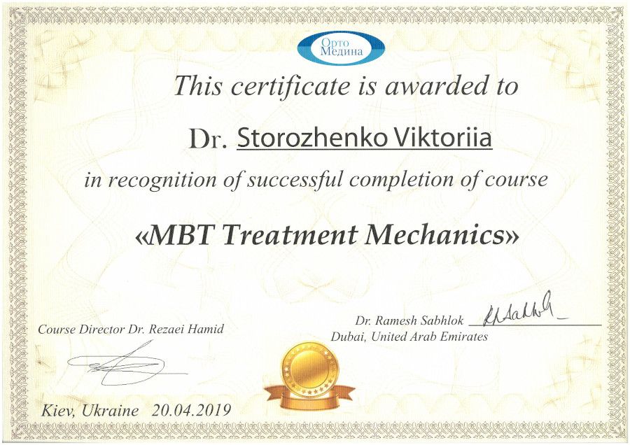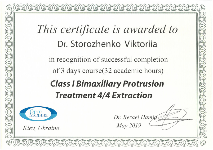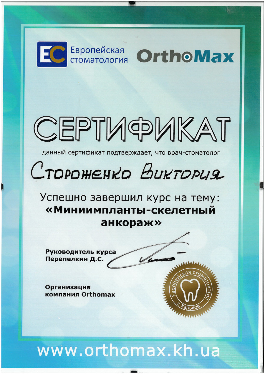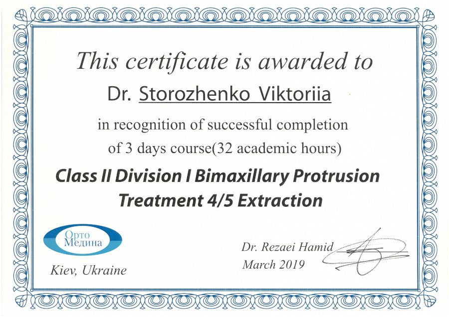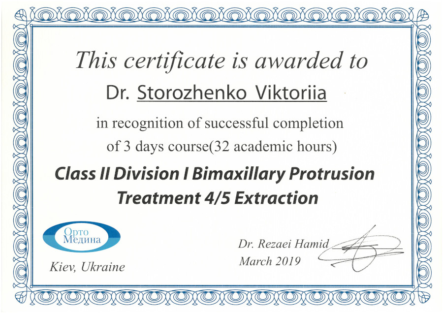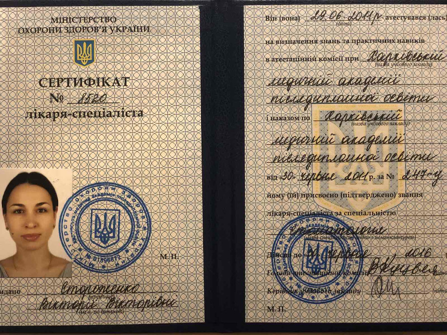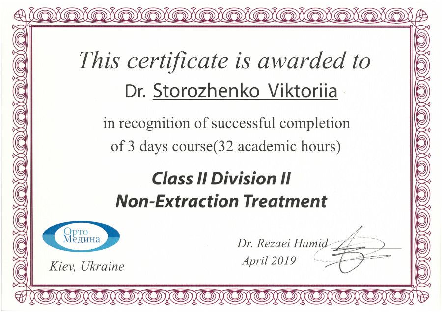 Спеціалізація “Ортодонтія” отримана у Харківській медичній академії післядипломної освіти