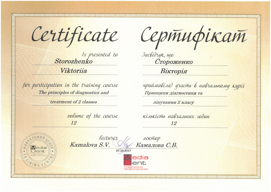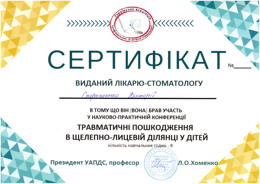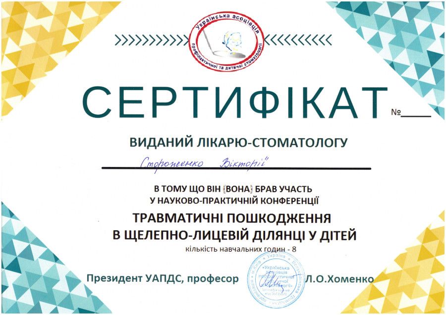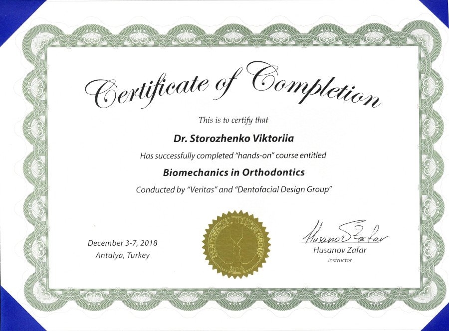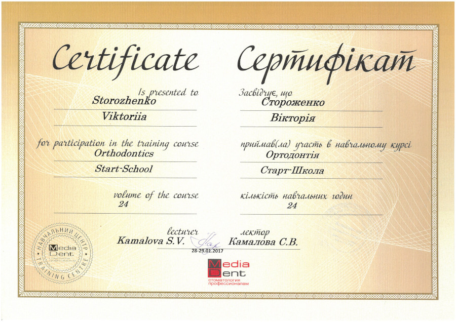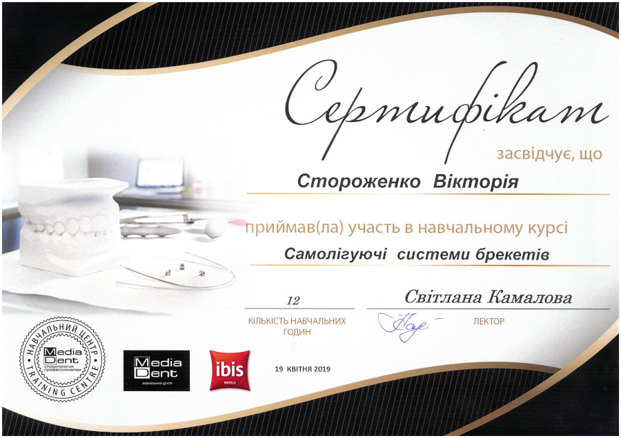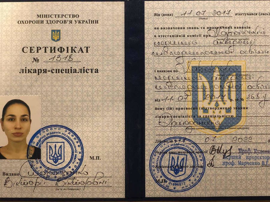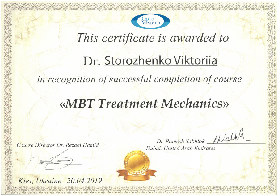 Спеціалізація “Ортодонтія” отримана у Харківській медичній академії післядипломної освіти