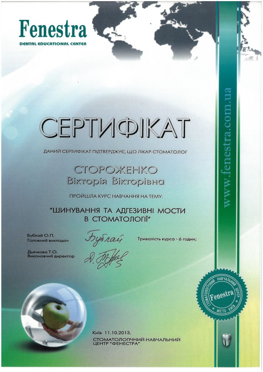 “Шинування та адгезивні мости в стоматології”, 2013 рік, Київ.
