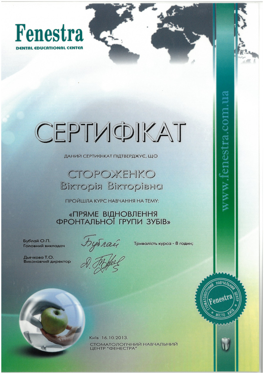 “Пряме відновлення фронтальної групи зубів”, 2013 рік, Київ.
