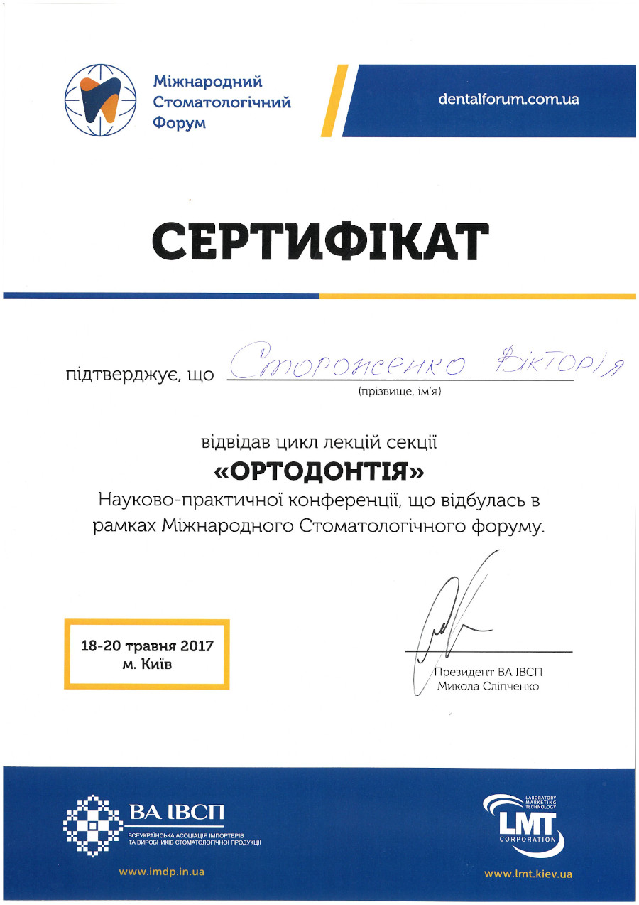 Міжнародний Стоматологічний форум, секція “Ортодонтія”, 2017 рік, Київ.