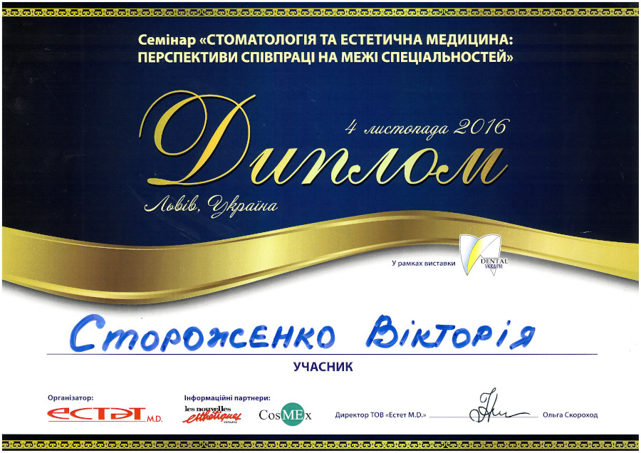 Семінар “Стоматологія та естетична медицина: перспективи співпраці на межі спеціальностей”, 2016 рік, Львів.
