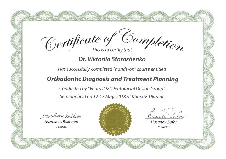 «Orthodontic Diagnosis and Treadment Planing», 2018 рік, Харків.
