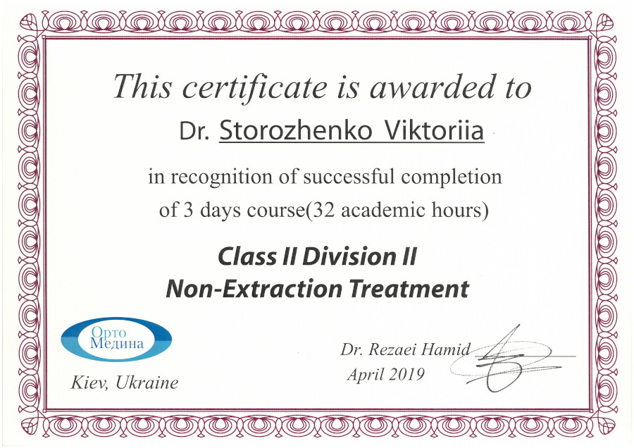 Типодонт – курс “Class II Division II Non – Extraction Treatment”, 2019 рік, Київ.