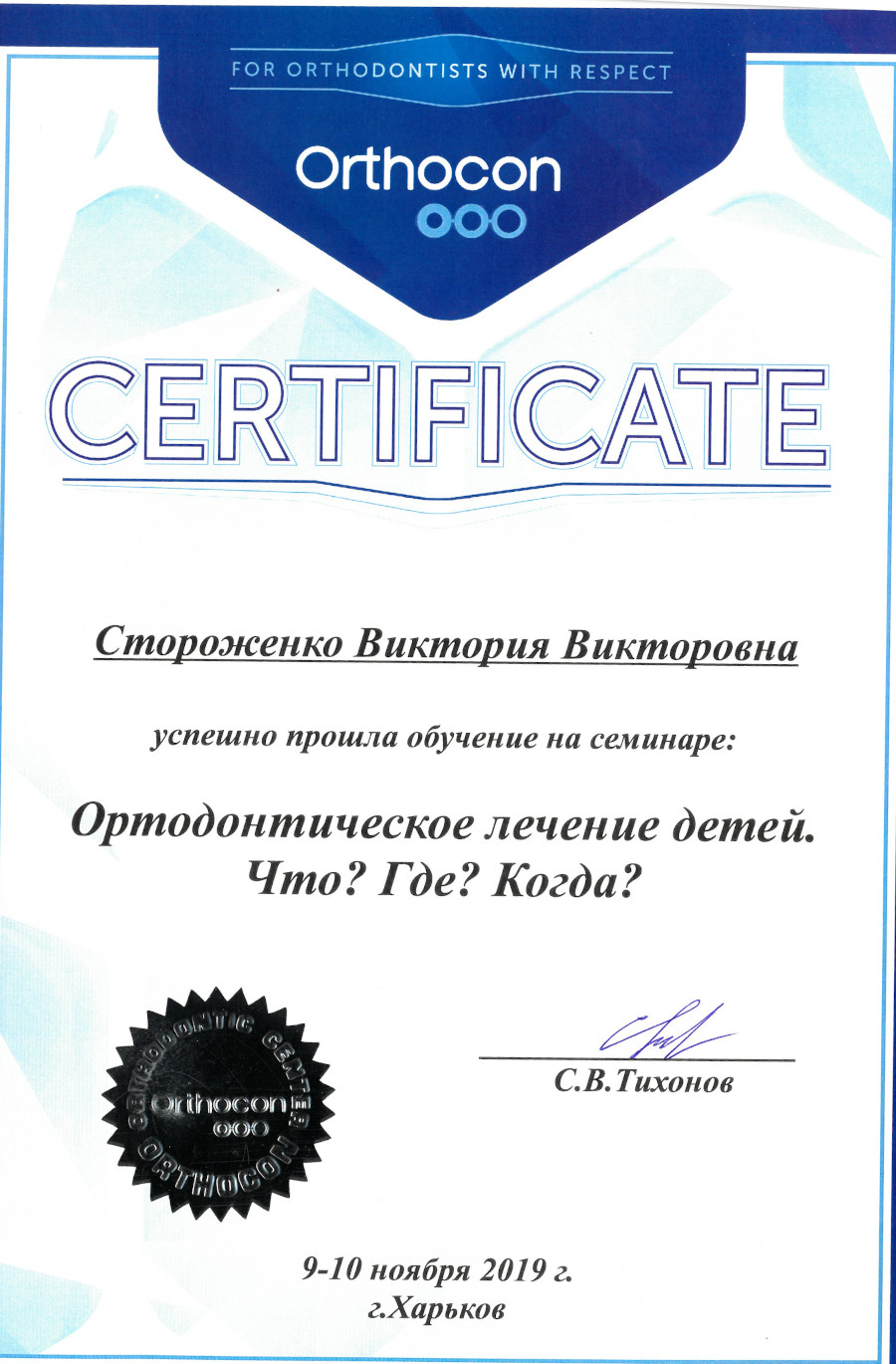 “Ортодонтическое лечение детей. Что? Где? Когда?”, 2019 рік, Харків.